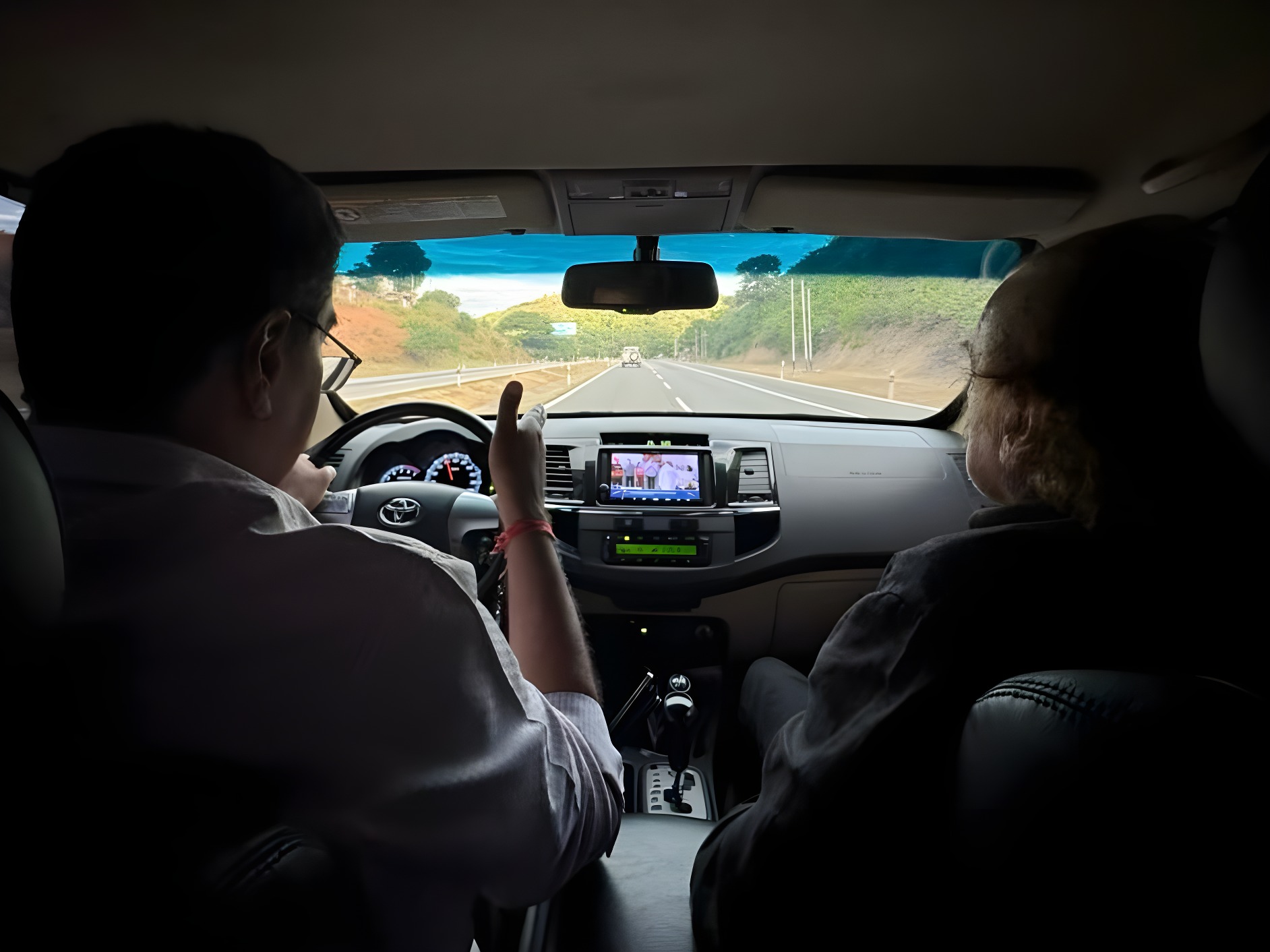La rencontre prend fin. Entouré et embrassé par les membres de la commune qui souhaitent prendre une photo avec lui, le président me fait signe discrètement de m’approcher de son véhicule garé à environ cinq mètres. Il parvient enfin à se libérer de l’emprise enthousiaste de la foule et monte à bord, du côté du conducteur. Je monte à côté de lui par la porte opposée. Aucun garde du corps ne nous accompagne. Le président démarre et pendant une heure et demie, nous pouvons discuter tranquillement de ce moment crucial que traverse le Venezuela.