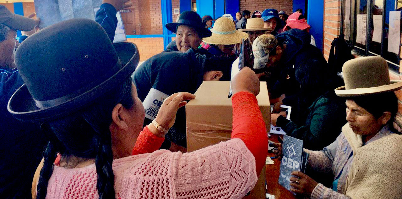 L’élection du 20 octobre s’annonçait donc tendue. Avec d’une part une érosion prévisible du soutien à Evo Morales et d’autre part des actions de déstabilisation menées par certains secteurs de l’opposition qui avaient d’ores et déjà appelé à une grève illimitée une semaine avant les élections et annoncé que dans le cas d’une victoire au premier tour d’Evo Morales, ils ne reconnaîtraient pas le résultat. Ainsi, le siège du Mouvement vers le socialisme (le MAS, parti dirigé par Evo Morales) à Santa Cruz de la Sierra, pôle économique du pays, a été saccagé quelque jours avant le scrutin, faisant plusieurs blessés. Un scénario de tension similaire à celui qui a conduit en 2008 aux confrontations sécessionnistes de cette riche région agricole de la zone ouest du pays appelée la « Média Luna ».
