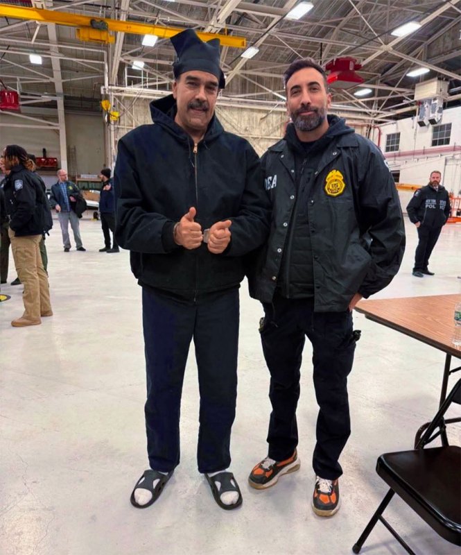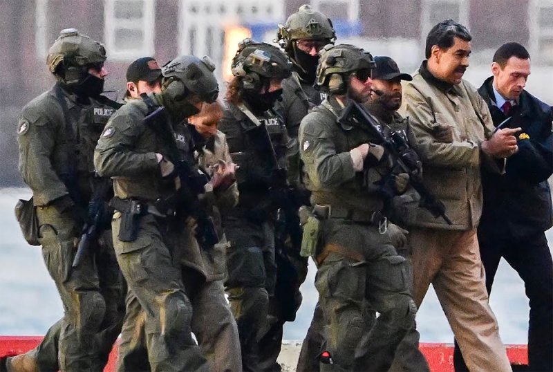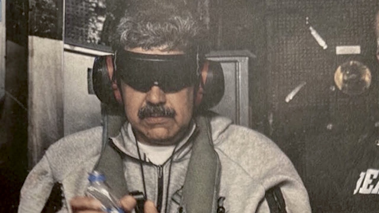 Suit une série de séquences inimaginables dans un monde civilisé. Le président Maduro et Cilla Flores sont transférés à bord du navire d’assaut « USS Iwo Jima ». Ils transitent par Guantánamo. Des photos du chef de l’Etat circulent – entravé, masque sur les yeux, en mode Saddam Hussein ou El « Chapo » Guzman. Il s’agit de salir son image, polluer sa respectabilité. Le couple descend de l’avion sur une base militaire de la région de New York. On se rend compte, à leur démarche, que tous deux ont été blessés. Elle aux côtes, lui aux jambes. Dans l’épreuve, même menotté, Maduro reste Maduro. Il jette un cordial « Happy New Year, good night » à ses geôliers. Des agents de la DEA lui tapent plutôt amicalement sur l’épaule. Il fait un ostensible V de la victoire face caméra.