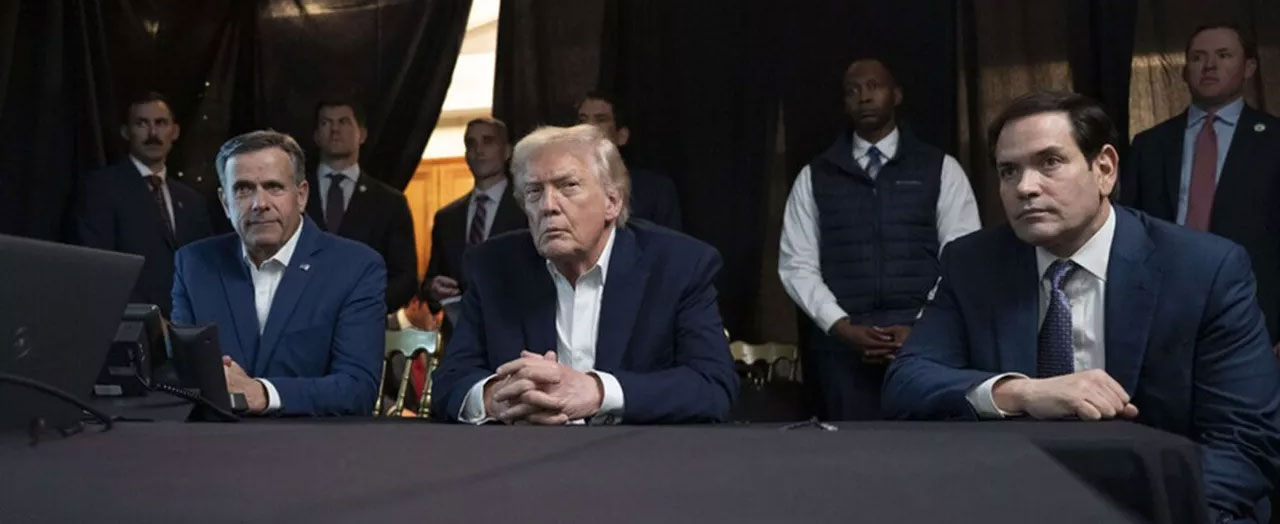 - Trump, John Ratcliff (directeur de la CIA) et Marco Rubio (secrétaire d’Etat) assistant en direct à leur action criminelle contre le Venezuela.