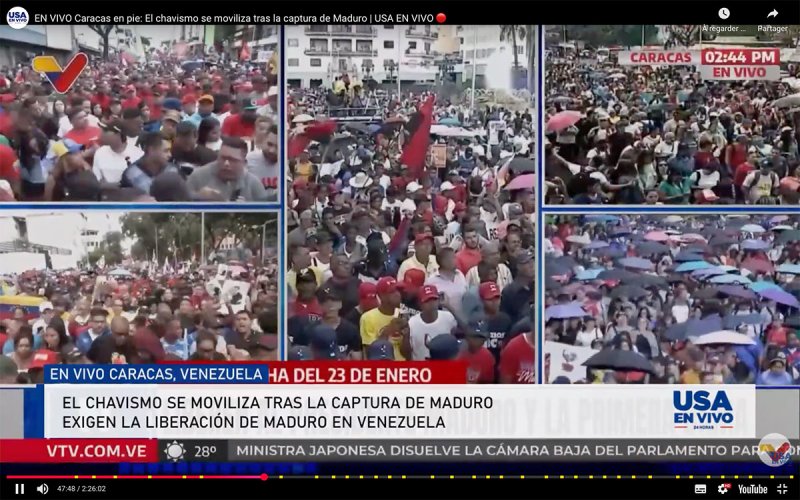 Au Venezuela, là où se livre la véritable bataille, un choc qui n’a rien de virtuel, l’appareil d’Etat, loin de s’effondrer, fait preuve d’une forte cohésion. Les droites s’en émeuvent. « Les opposants au régime espéraient une renaissance de la démocratie et des libertés individuelles, c’est, pour l’instant, tout le contraire qui est arrivé, s’indigne implicitement le quotidien Le Monde (8 janvier). On attendait le retour imminent des opposants Maria Corina Machado, Prix Nobel de la Paix 2025, et d’Edmundo Gonzalez Urrutia – qui revendique la victoire lors de l’élection présidentielle de juillet 2024 –, mais c’est Delcy Rodriguez, chaviste convaincue (…) que les Etats-Unis ont adoubée, semant la confusion. » Traduction en version plus intelligible : l’action de Washington est tout à fait condamnable, mais elle l’eut été moins si, décapitant définitivement le chavisme, Trump avait fait le « job » jusqu’au bout.
