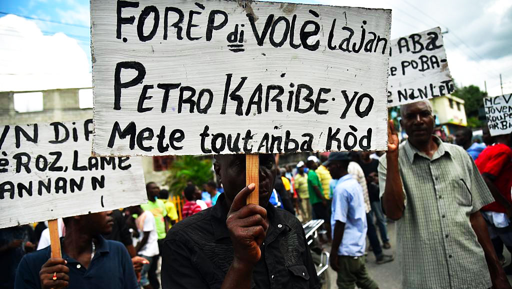Toutefois, à partir de juillet 2018, c’est le ressentiment populaire qu’alimentent des révélations sur les avantages présumés des fonctionnaires, le débat sur l’utilisation discutable des fonds Petrocaribe et l’augmentation des prix des combustibles qui relancent la tension. Puis l’insurrection populaire. « Environ trois milliards des fonds de Petrocaribe ont été gaspillés durant le gouvernement de Martelly, s’indigne Henry Boisrolin, du Comité démocratique haïtien, et, quand on lui a demandé ce qui s’est passé avec cet argent, il a répondu qu’il avait construit les hôtels Marriott, Oasis, etc. Ce sont les hôtels qui ont été attaqués, où des autos ont été incendiées et où de nombreuses choses ont été détruites. C’est une tromperie. Un président qui quitte le pouvoir et reconnaît qu’il a acheté une maison pour 9 millions de dollars, puis prétend qu’une banque les lui a prêtés. Un ex-président qui demande un hélicoptère à la République dominicaine pour fuir le pays avec sa famille [10]… »