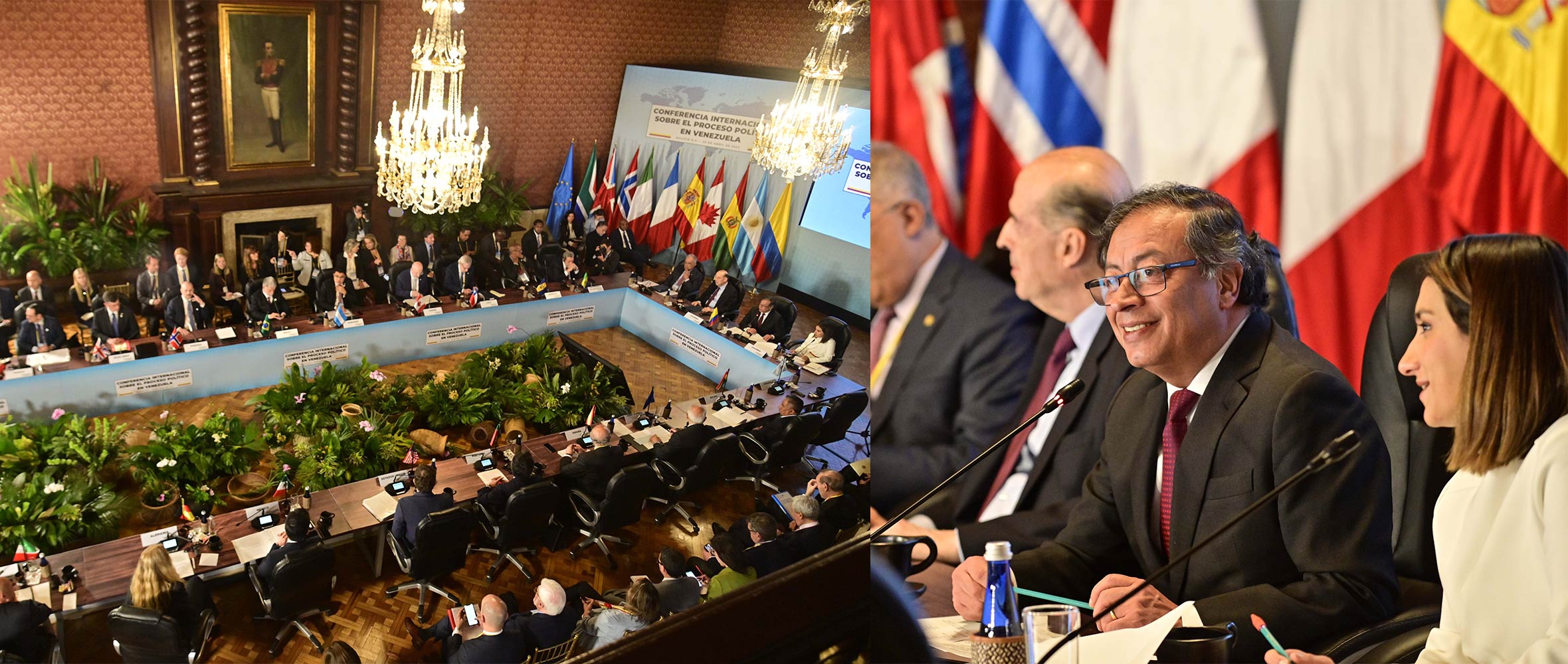 Le 24 avril, en s’adressant aux autorités colombiennes et aux représentants de gouvernements qui participeraient le lendemain à la conférence de Bogotá, Maduro a clairement exprimé la position du Venezuela : « Si quelqu’un parmi vous veut, aspire à ce que les négociations politiques entre ce secteur minoritaire de l’opposition, appelé Plateforme unitaire, et le gouvernement bolivarien et chaviste du Venezuela, reprennent au Mexique, vous n’avez qu’une chose à faire : dans le communiqué officiel que vous approuverez, demandez que le gouvernement américain dépose les 3,2 milliards de dollars séquestrés sur les comptes bancaires que nous avons à l’étranger pour le plan social signé dans l’accord partiel au Mexique, en novembre 2022. »